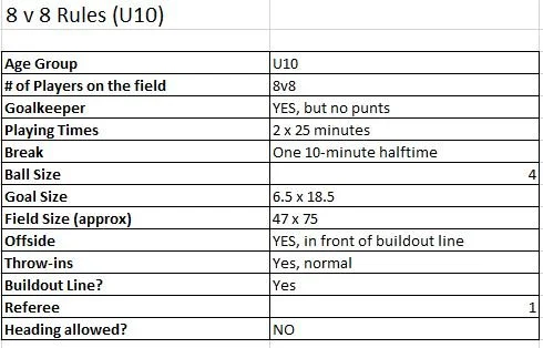 U8 Rec Rules and Game Format